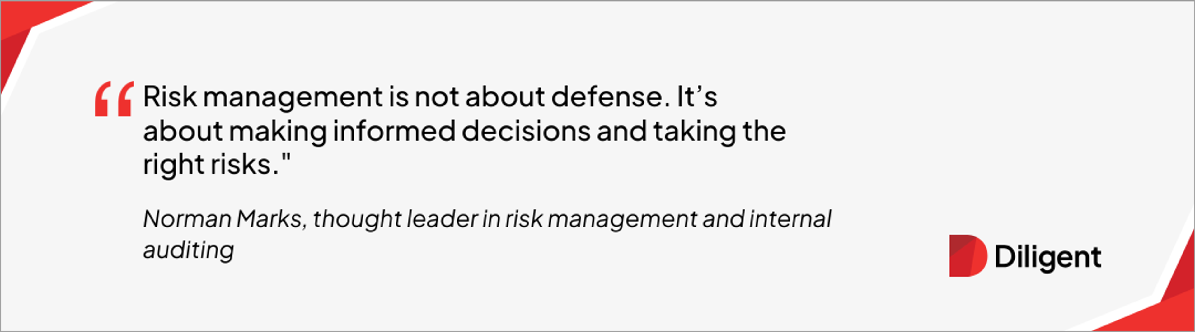 As Norman Marks, thought leader in risk management, points out, "Risk management is not about defense. It’s about making informed decisions and taking the right risks."