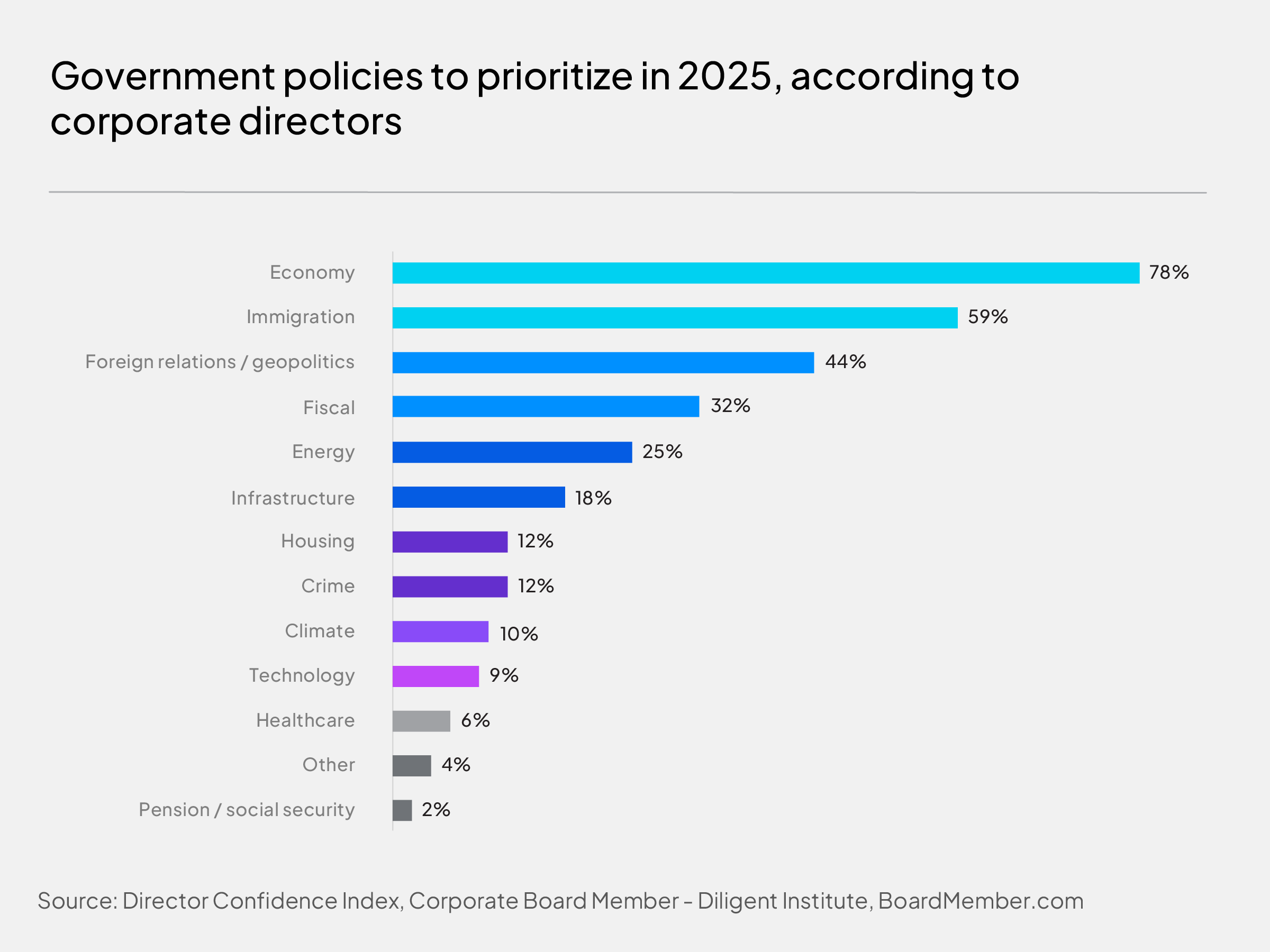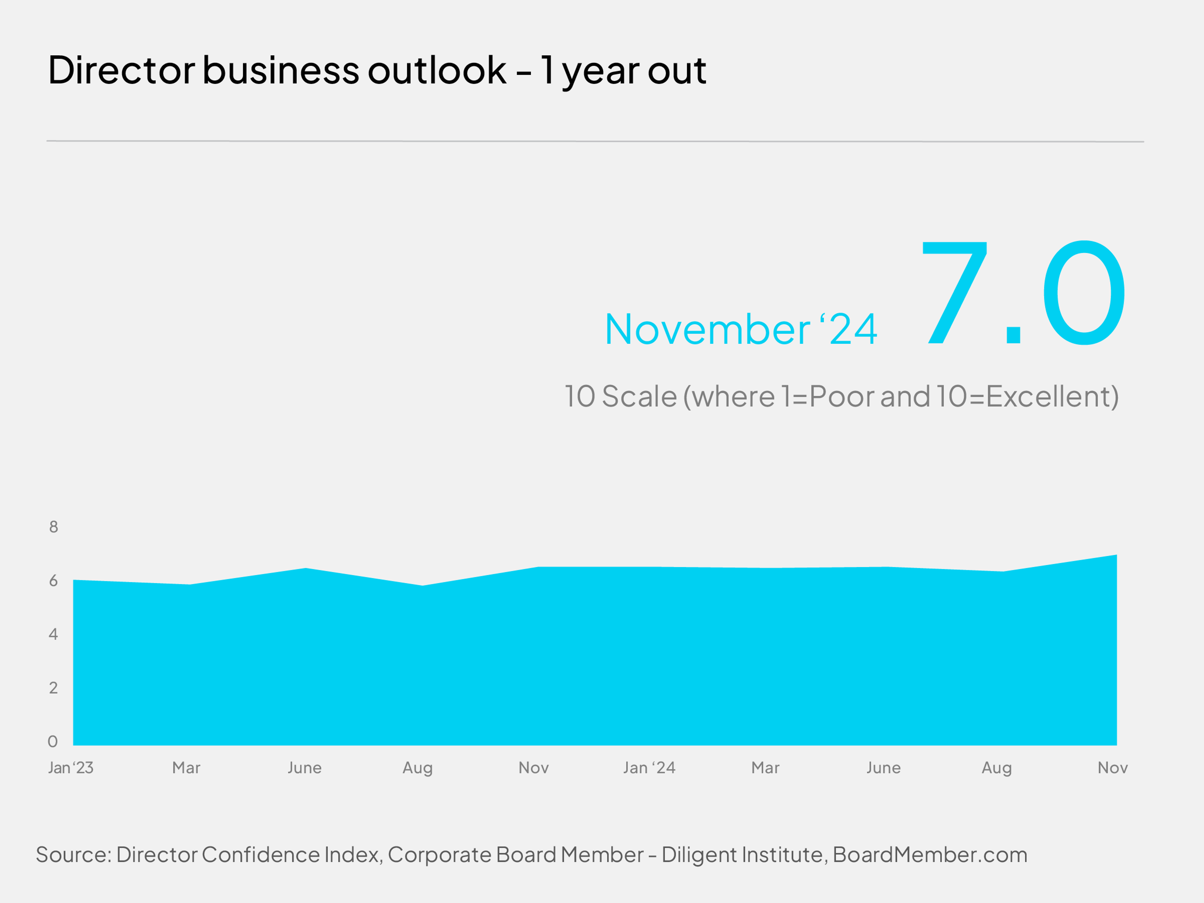 Our November Director Confidence Index, conducted in partnership with Corporate Board Member, finds the majority of corporate directors optimistic about the business landscape in 2025: 54 percent expect conditions to improve over the next 12 months, vs. 42 percent in Q3 when we last polled them on this matter.